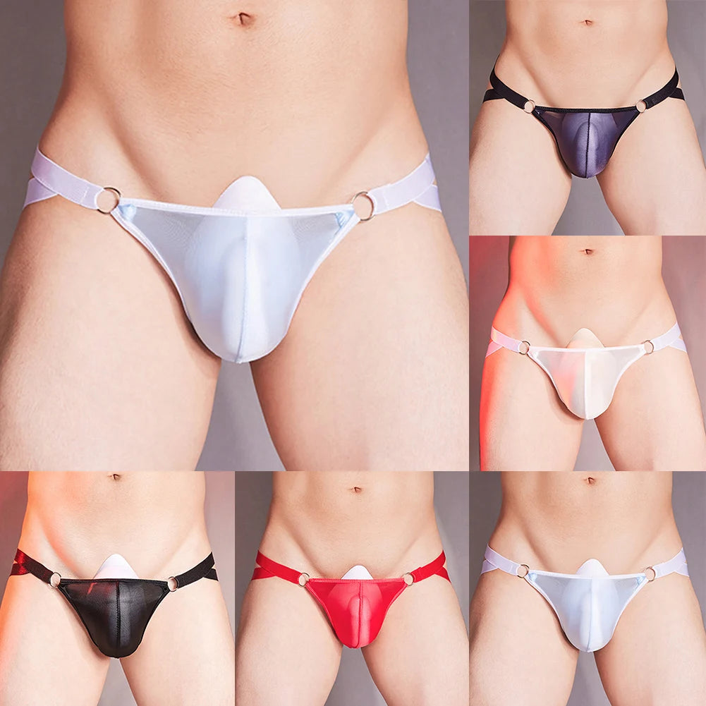 This seductive men’s G-string combines ultra-thin transparency with a shimmering oil-slick finish to deliver maximum visual impact and sensual comfort. Stretchy, lightweight, and provocatively revealing — it's made for men who dare.